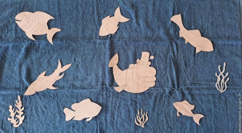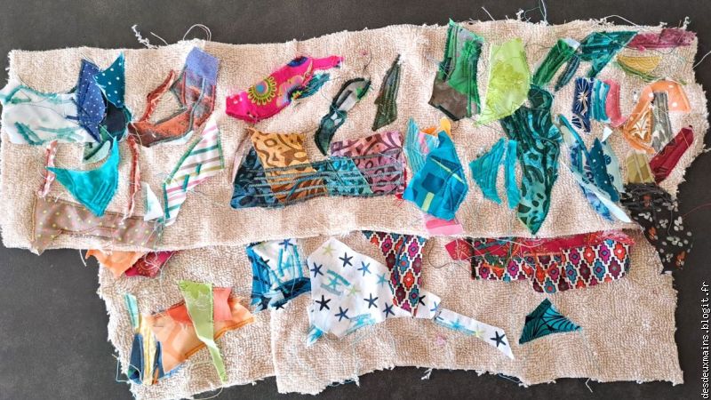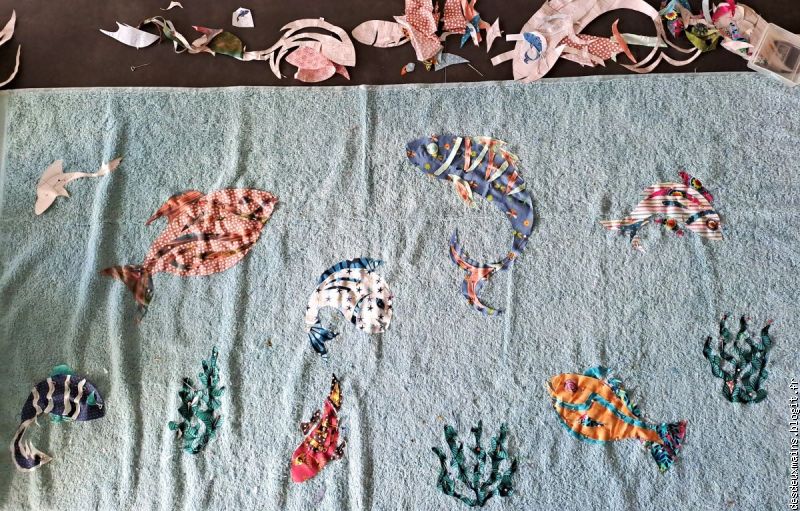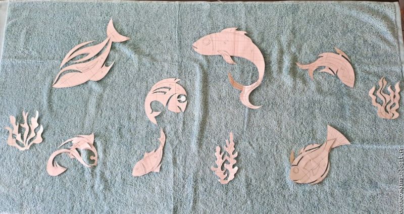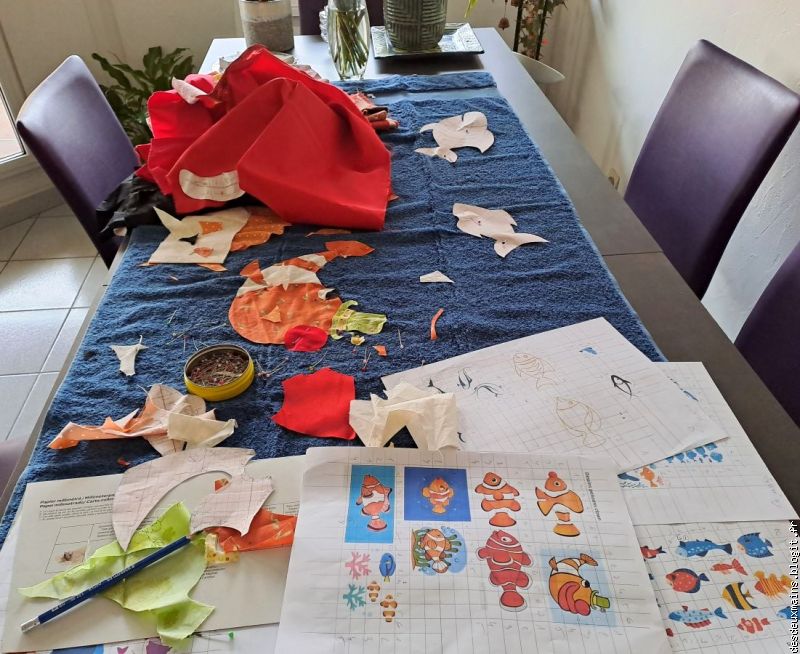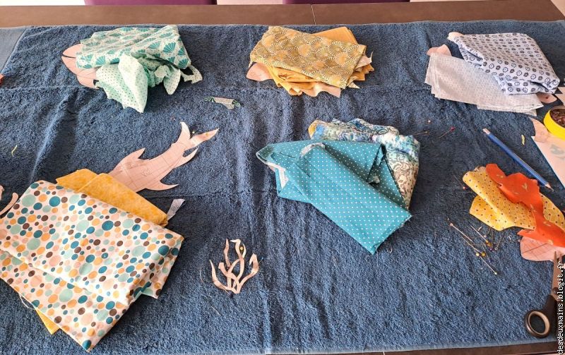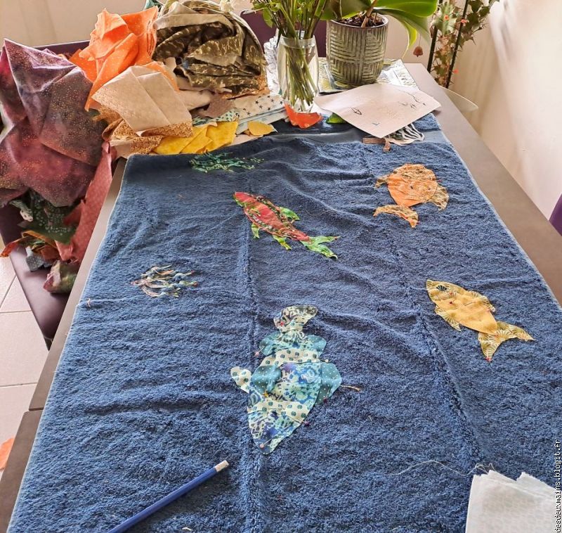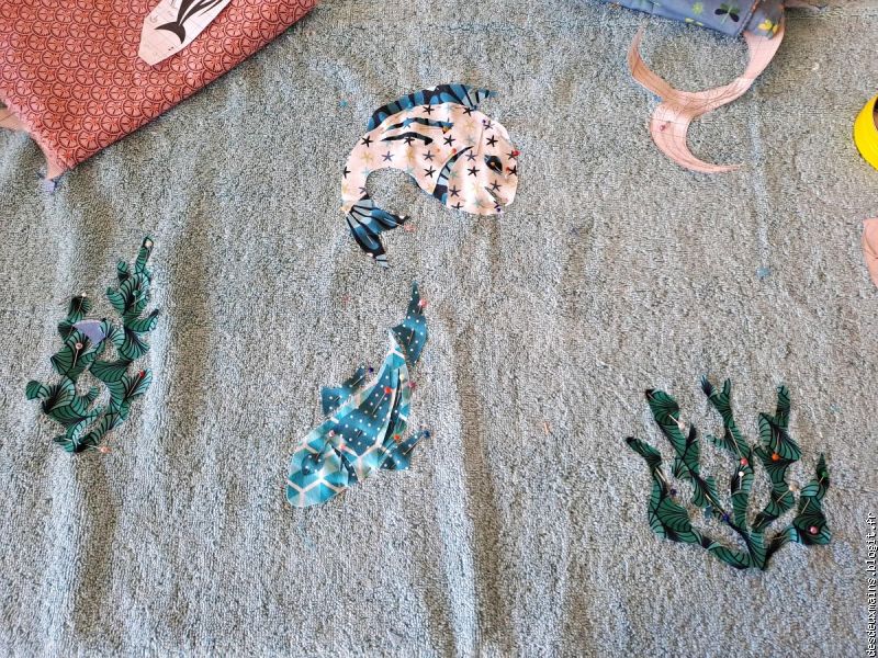 ) !Par contre, pour les algues, je savais que j'utiliserais le même tissu pour les mettre en valeur et en mouvement et j'ai bien fait (non? si !!)...