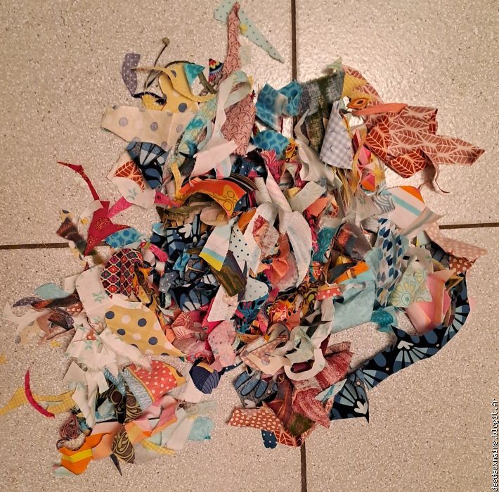 D'ailleurs, en attendant "les" réalisations (gros indice, là , à vous d'. . . Imaginer !!), vous pouvez vous amuser à dénicher les différences entre les ... tas * et voir ce qui a pu changer ou pas au niveau des tissus prévus, choisis, et/ou utilisés !