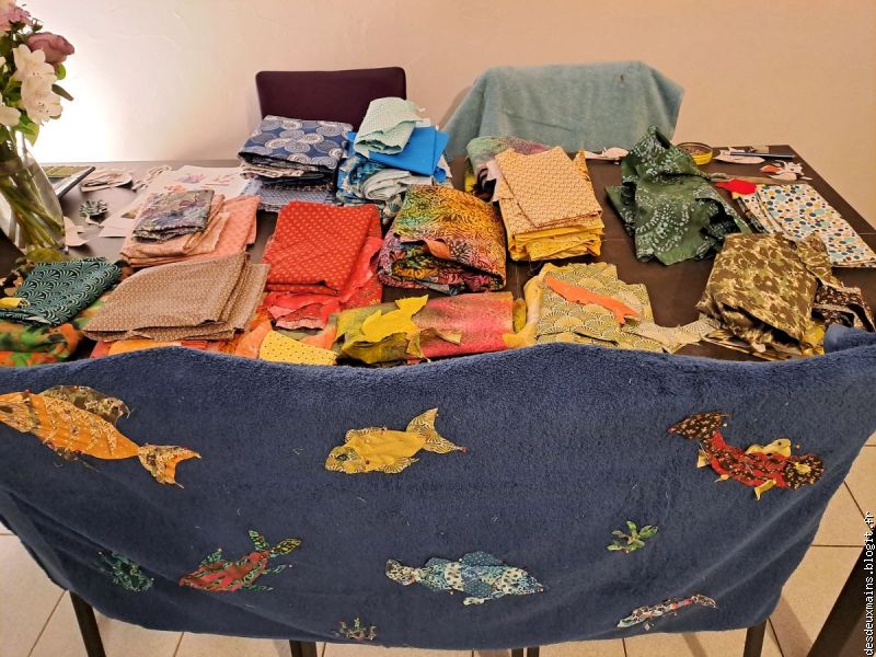Un p'tit rab' d'assortiment des (nombreux) tissus et fils (forcément nombreux-z-aussi) adéquats .......