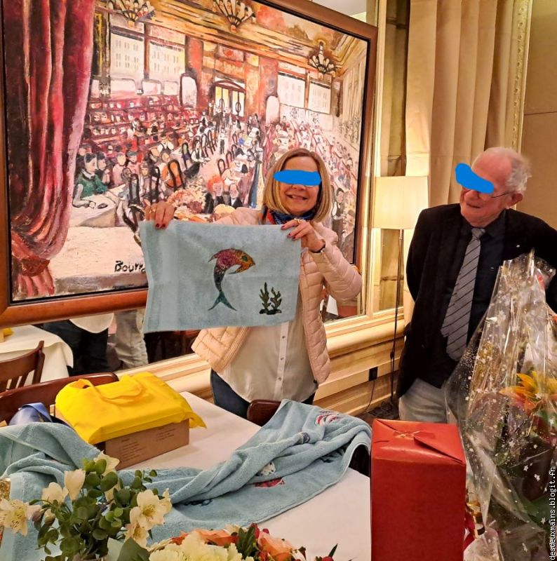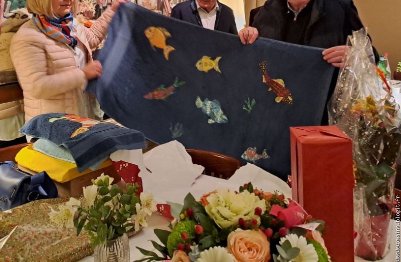 ...) ravies de toutes ces attentions/intentions très personnalisées et donc bien ciblées de tous leurs amis/famille présents. . . Quant à elles, si les serviettes ont beaucoup ému leurs nouveaux propriétaires, et ont aussi fait quelques envieux qui, s'ils sont sages, auront peut-être droit à la leur durant la prochaine année .......